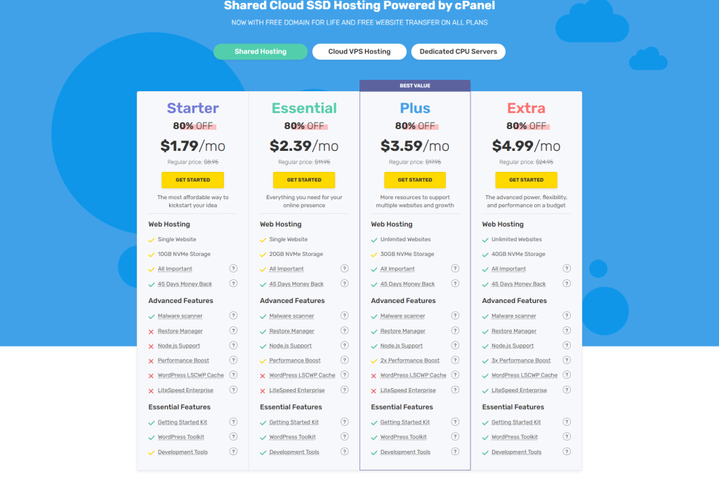 If you’re just starting out, the Shared Hosting plans offer great value. For scaling projects, the Cloud VPS or Managed Cloud Hosting strike a balance between performance and convenience. And for enterprises, Dedicated Servers provide maximum reliability.