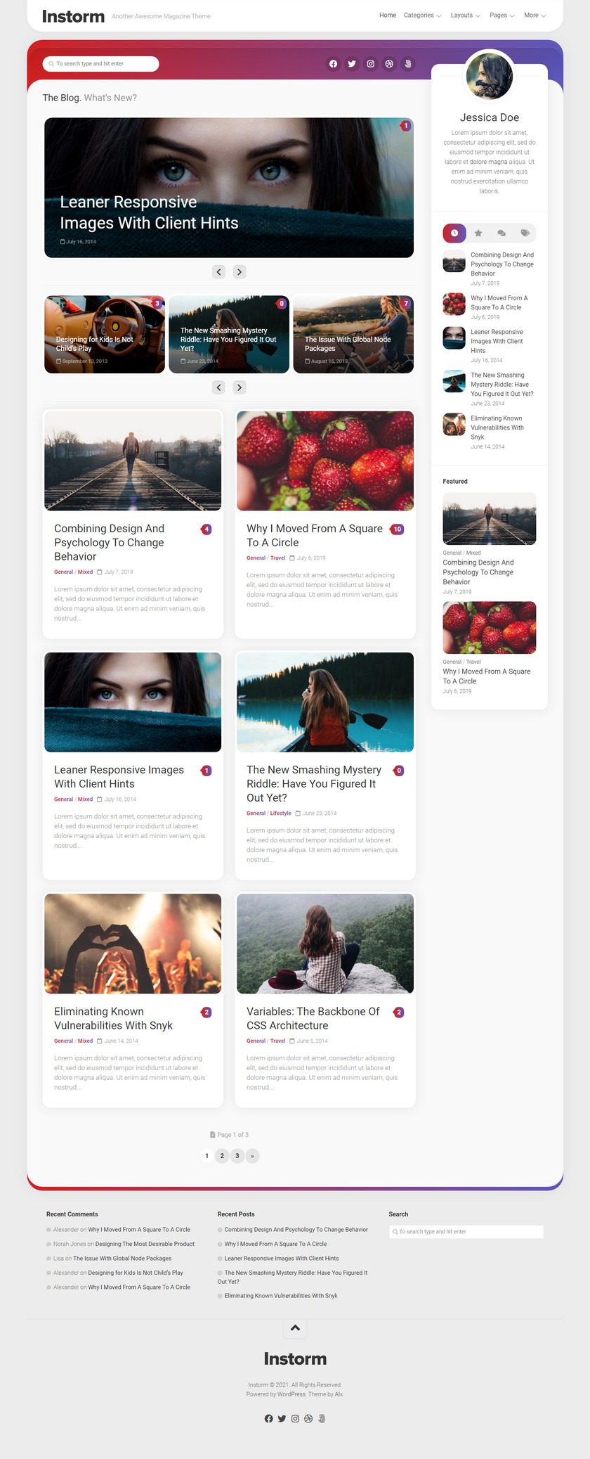 Instorm is a perfect magazine and blog theme with a colorful gradient style. Give it your own style by setting it to any color you want.